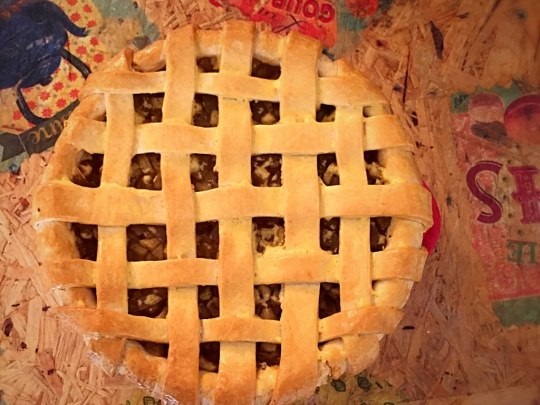 Другата разточена половина от тестото разрязвате на ивици и декорирате пая. Изрязвате тестото, което излиза извън тавичката.