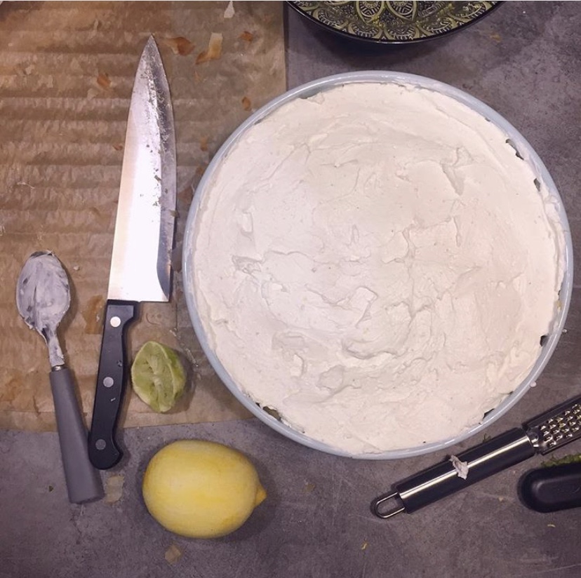 За крема, в купа изсипете сметаната и пудрата захар, разбъркайте до получаване на пухкава смес и добавете маскарпоне. Настържете лимонова кора и разбъркайте. Изсипете и разпределете равномерно върху слоя от кондензирано мляко.