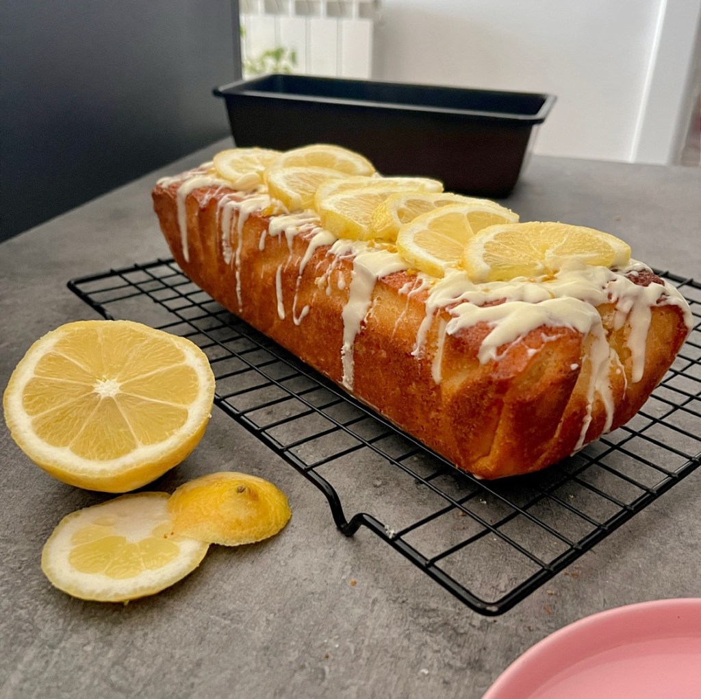 Направете глазура от темпериран бял шоколад. Оставете да стегне няколко часа, декорирайте с нарязани лимони поръсени със захар.