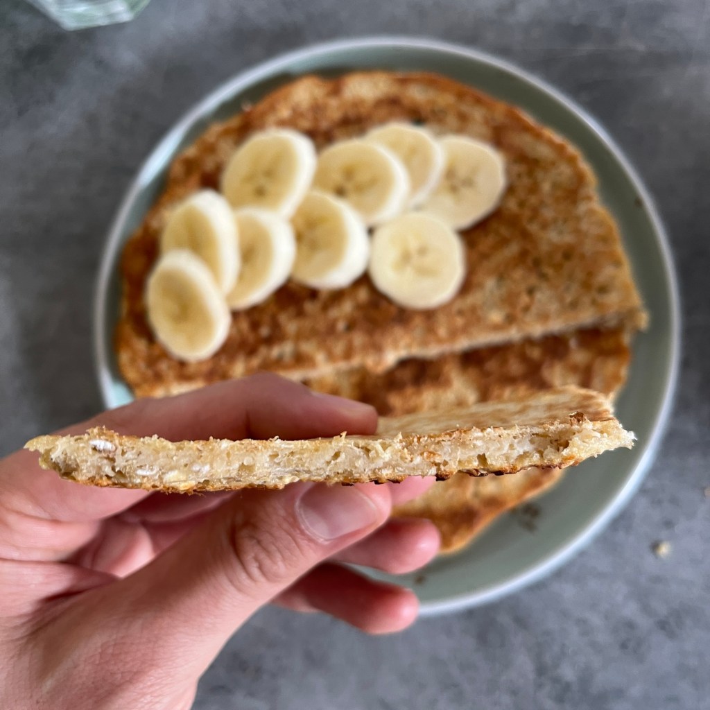 Разбивате яйцето, добавяте млякото и овесените ядки. Бъркате 30-40 секунди. В нагорещен тиган с капка олио изсипвате сместа, запържвате за 1-2 минути от всяка страна.